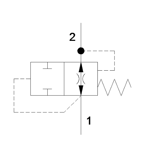 • При превышении заданного конструкцией клапана расхода из линии 1 в линию 2 клапан закрывается.